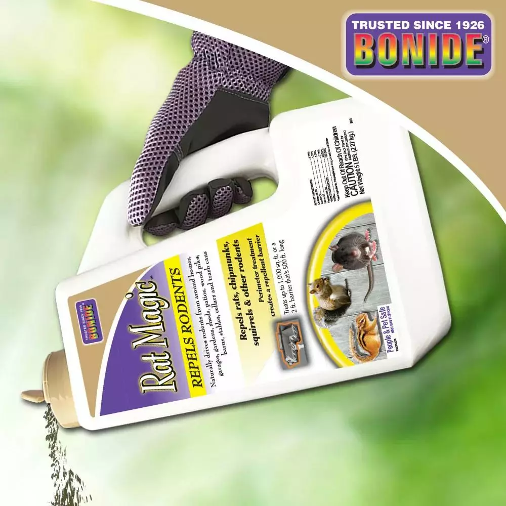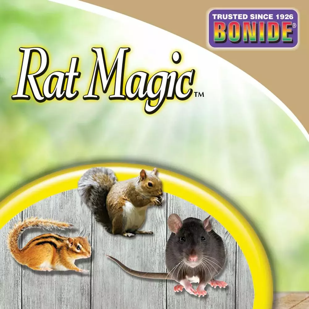 Rat Magic effectively repels rats and other rodents from around your home. Naturally drives rodents from around homes, garages, gardens, sheds, patios, wood piles, barns, stables, cellars, and trash cans. The unique combination of essential oils is safe to use around people and pets. Biodegradable. 5 lbs.; treats up to 1000 square feet or a 2′ barrier that’s 500′ long.