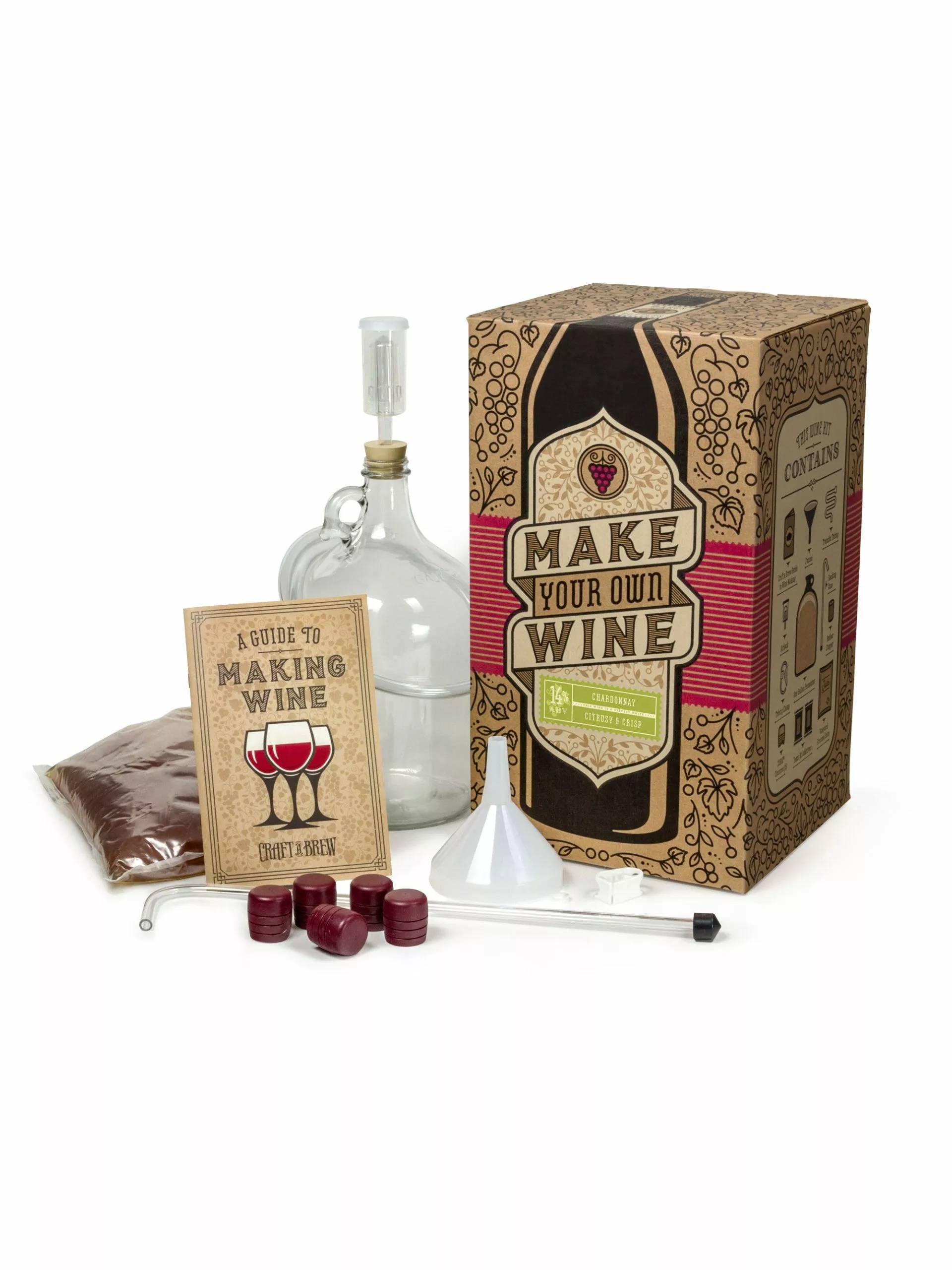 - Kit includes: Chardonnay juice with yeast, oak and additives, Guide to Making Wine, glass carboy, funnel, racking cane, rubber stopper, transfer tubing, tubing clamp, airlock, 5 zork closures, sanitizer