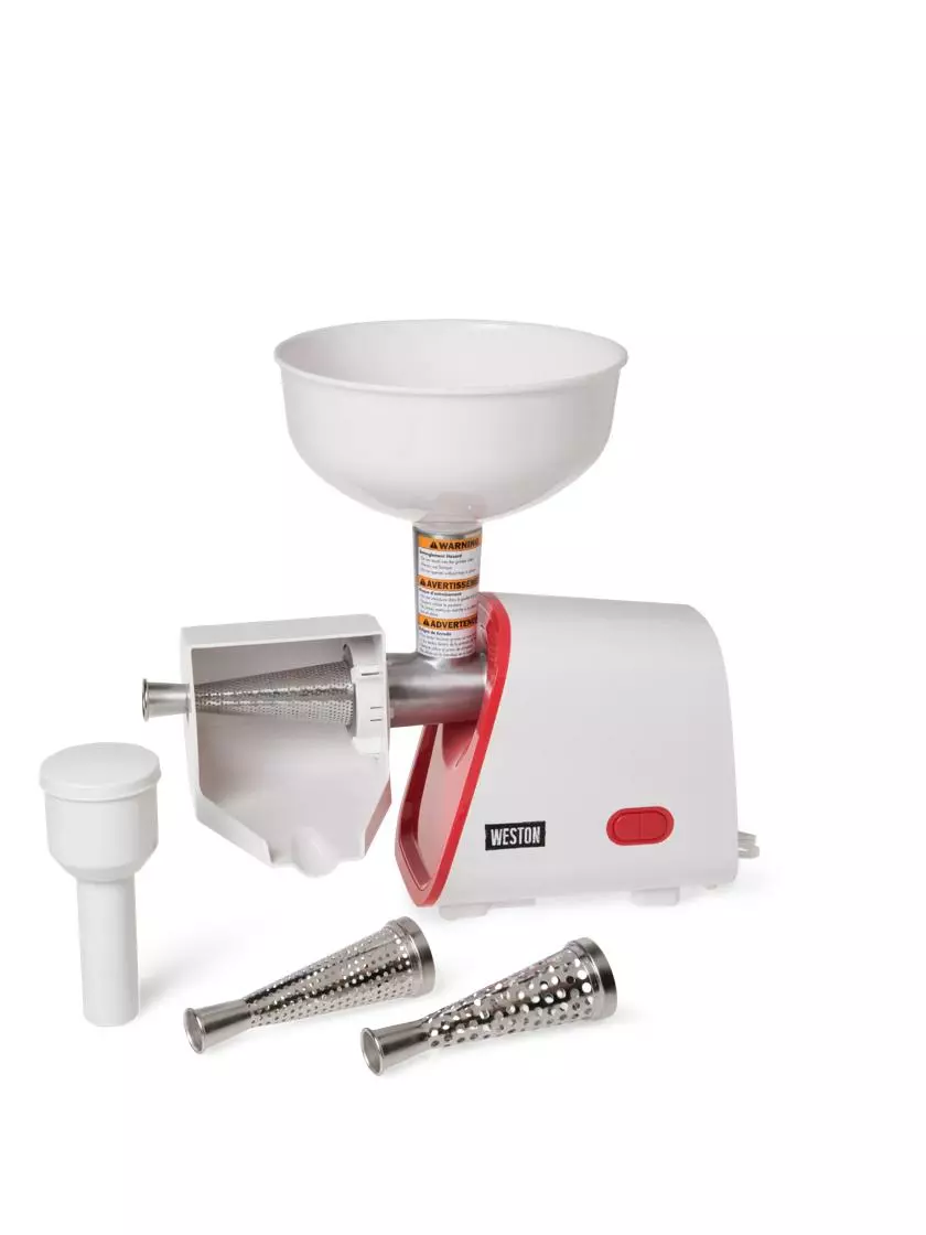 - Quickly separates skin and seeds from juice and pulp