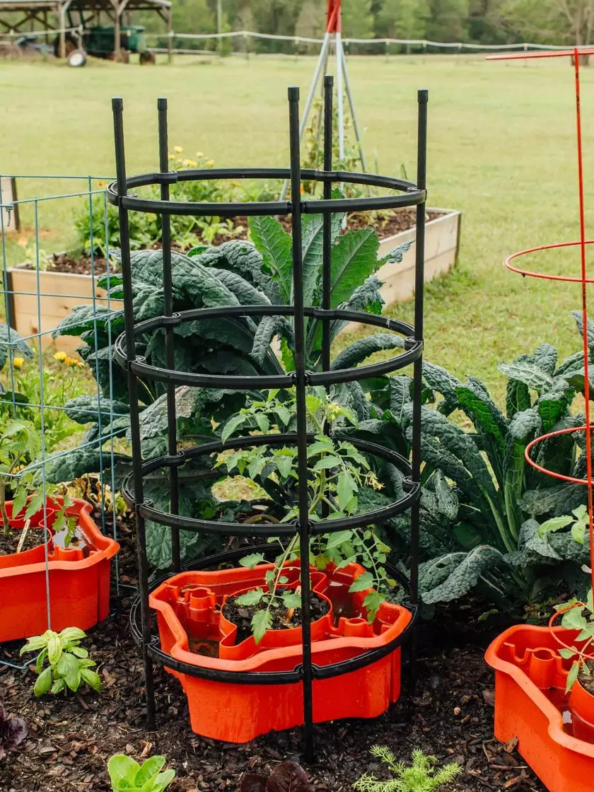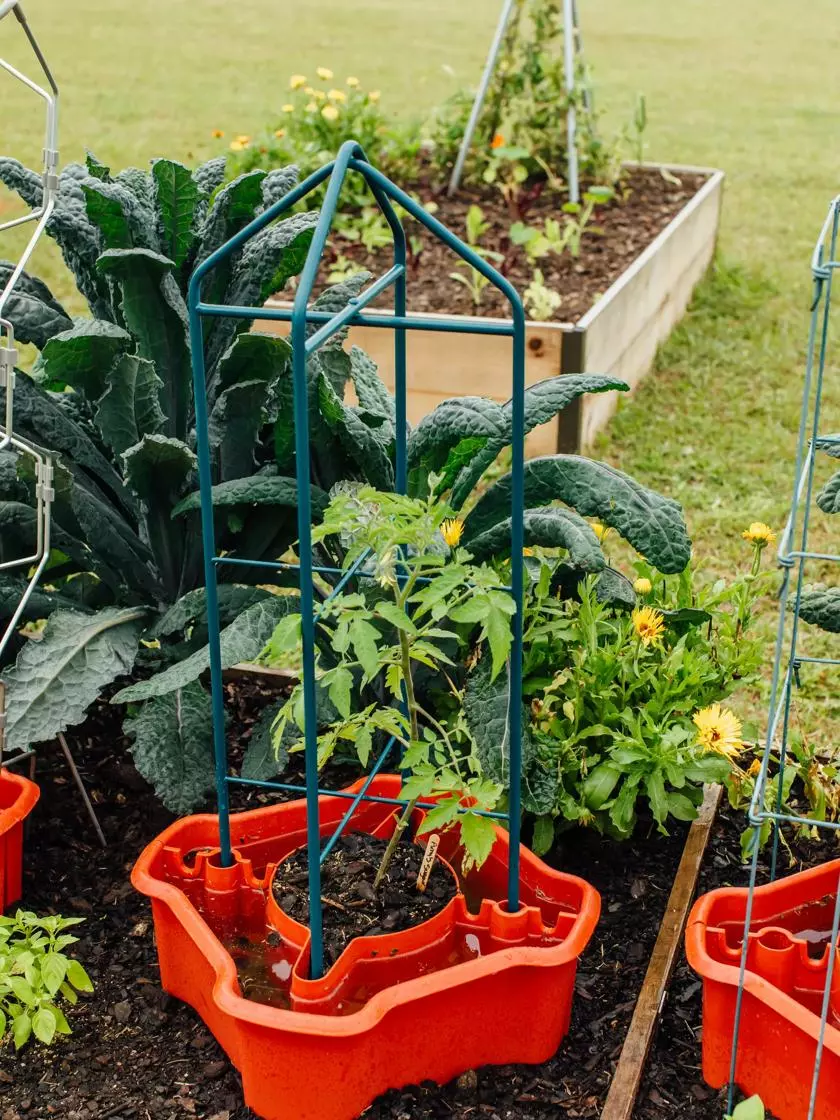 The two-piece design allows for use with a new or existing, already established plant. Higher walls protect stems, fend off cutworms, and discourage weeds. The base reservoir holds two gallons of water which releases water directly to the root zone. Tomatoes are notoriously thirsty plants so this feature is key!
