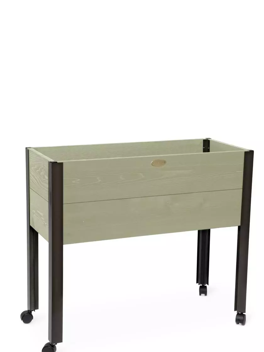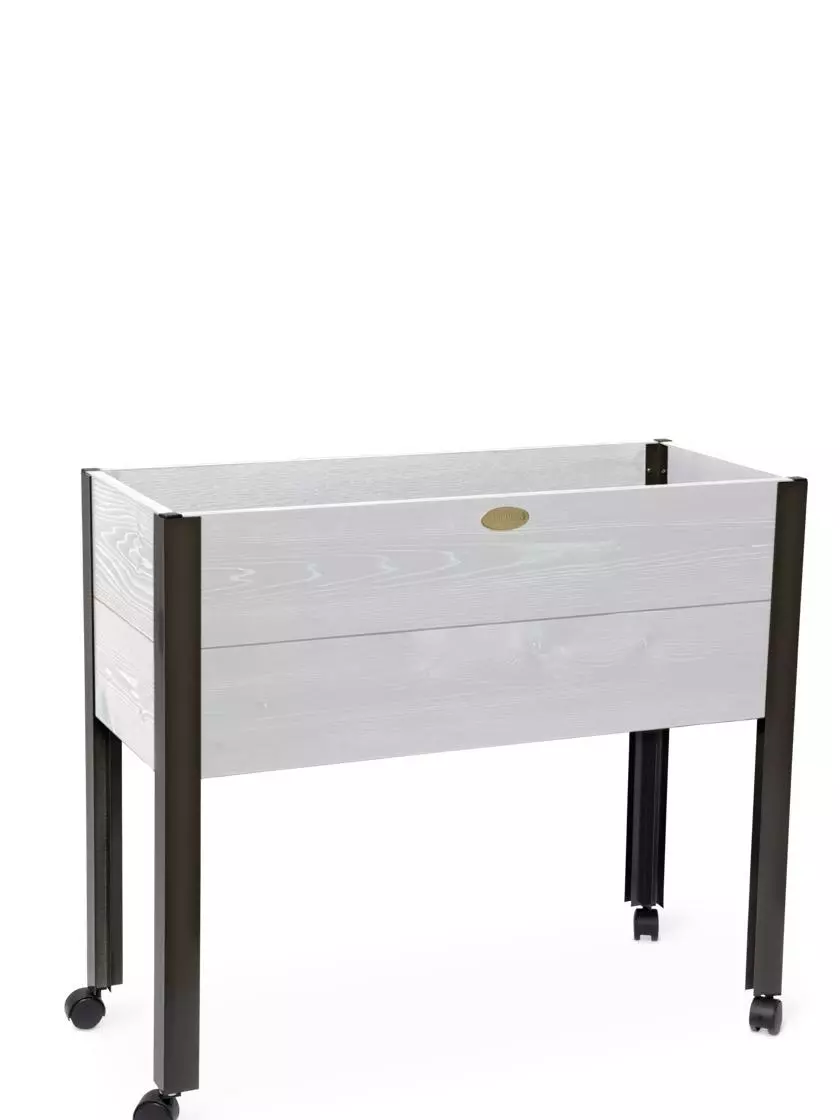Grow an abundance of food and flowers in a compact space. This lovely planter box is made of rot-resistant wood, coated with eco-friendly, food-safe PolyWhey® stain. It features our signature lifetime aluminum legs, and casters make it easy to roll around on your deck or patio. With a 10.5″ planting depth, this garden box is perfect for herbs, veggies, edible flowers, or an entire salsa garden. No-bend gardening is easier on your back and knees, and you’ll have fewer weeds to deal with too!
