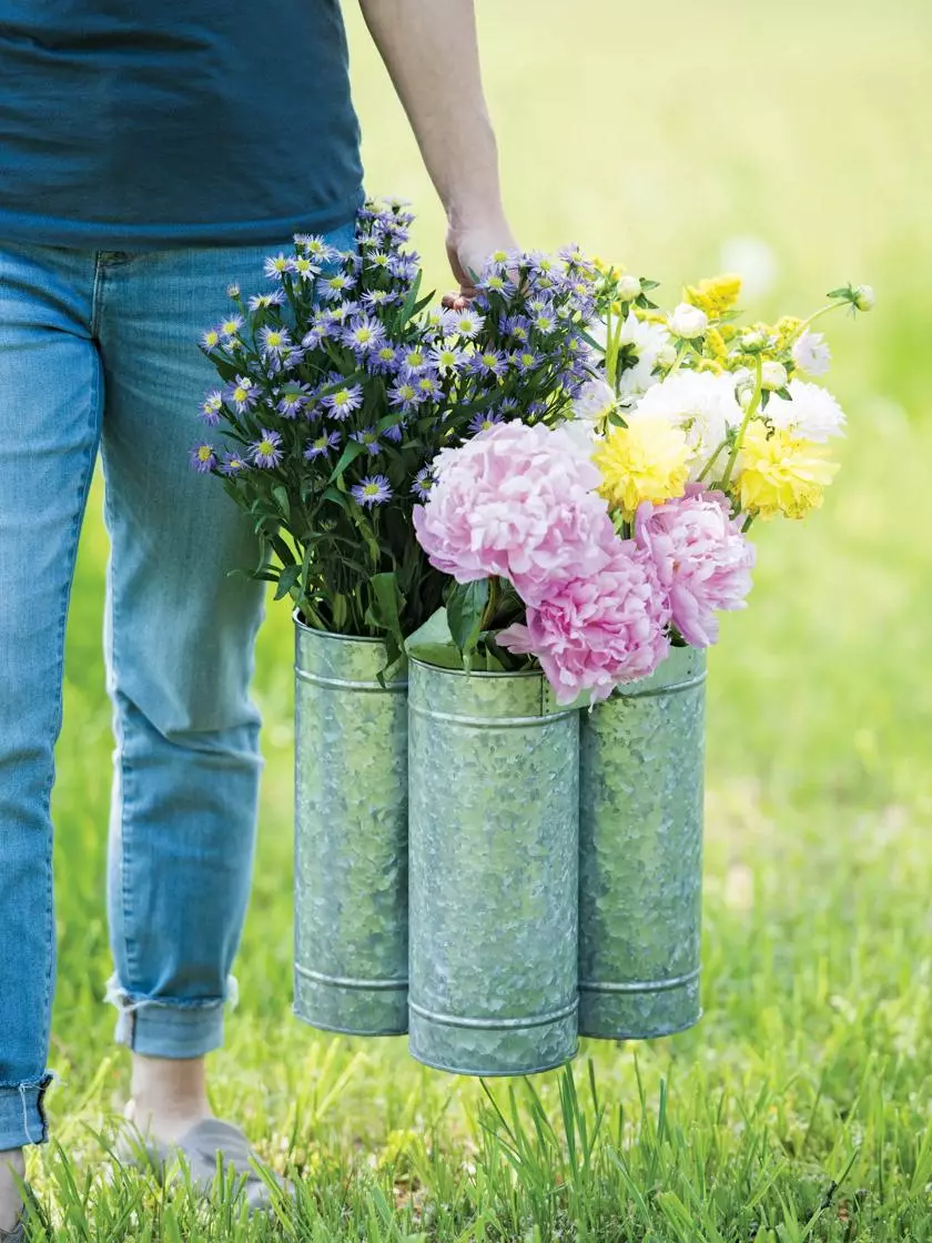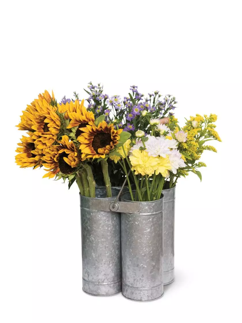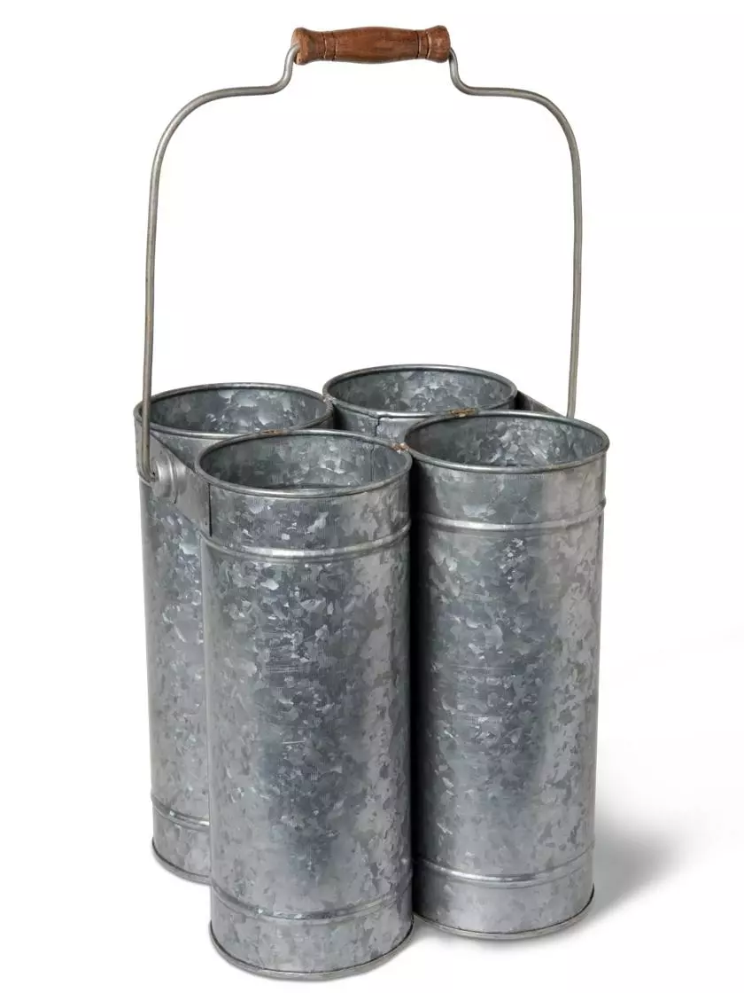 Vintage-inspired caddy is made up of four conjoined French flower market buckets, which give it stability as well as unique style. Galvanized-and-wood handle for single-handed carrying ease. Gather long-stemmed blooms, dogwood, willow branches, winterberries, and more. It’s actually perfect for picking; with a little water in each bucket, cuttings will stay fresh until you can get them indoors.