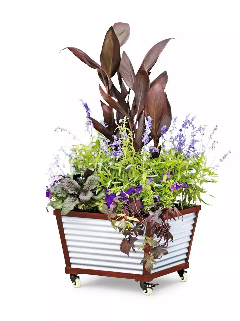 Galvanized Corrugated Metal Planter Adds Signature Style ā and Rolling, Self-Watering Ease to Outdoor Plantings
