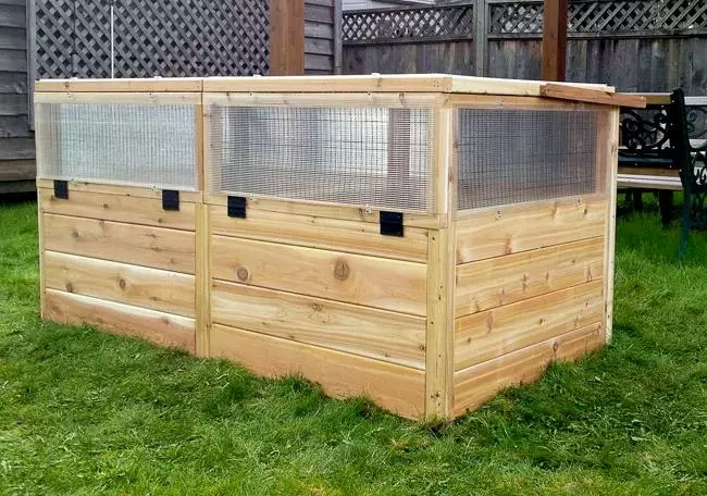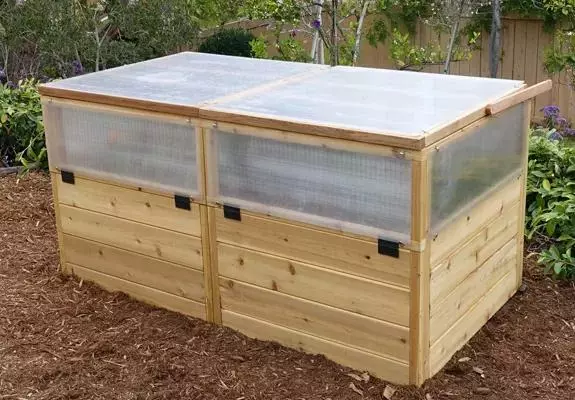 First, the Cedar Raised Garden Bed 3′ x 6′ with wire mesh screen panels and hinged folding fence panels. Second, the Trellis/Lid with wire mesh screen will protect plants and vegetable crops from being eaten by larger animals while still getting sun and water, and used later in the season as a trellis for taller plants like Clematis, runner beans or tomato plants to stretch and grow. Third, custom size 6 mm thick Polygal panels mounted in front of the screens and on the lid insulate the raised bed from cool winds. It is also ideal for an early start on seed propagation, seedling growth, water control and offers some protection in cool climates. Attached with clips, PolyGal panels can easily be adjusted to control temperature and climate.
