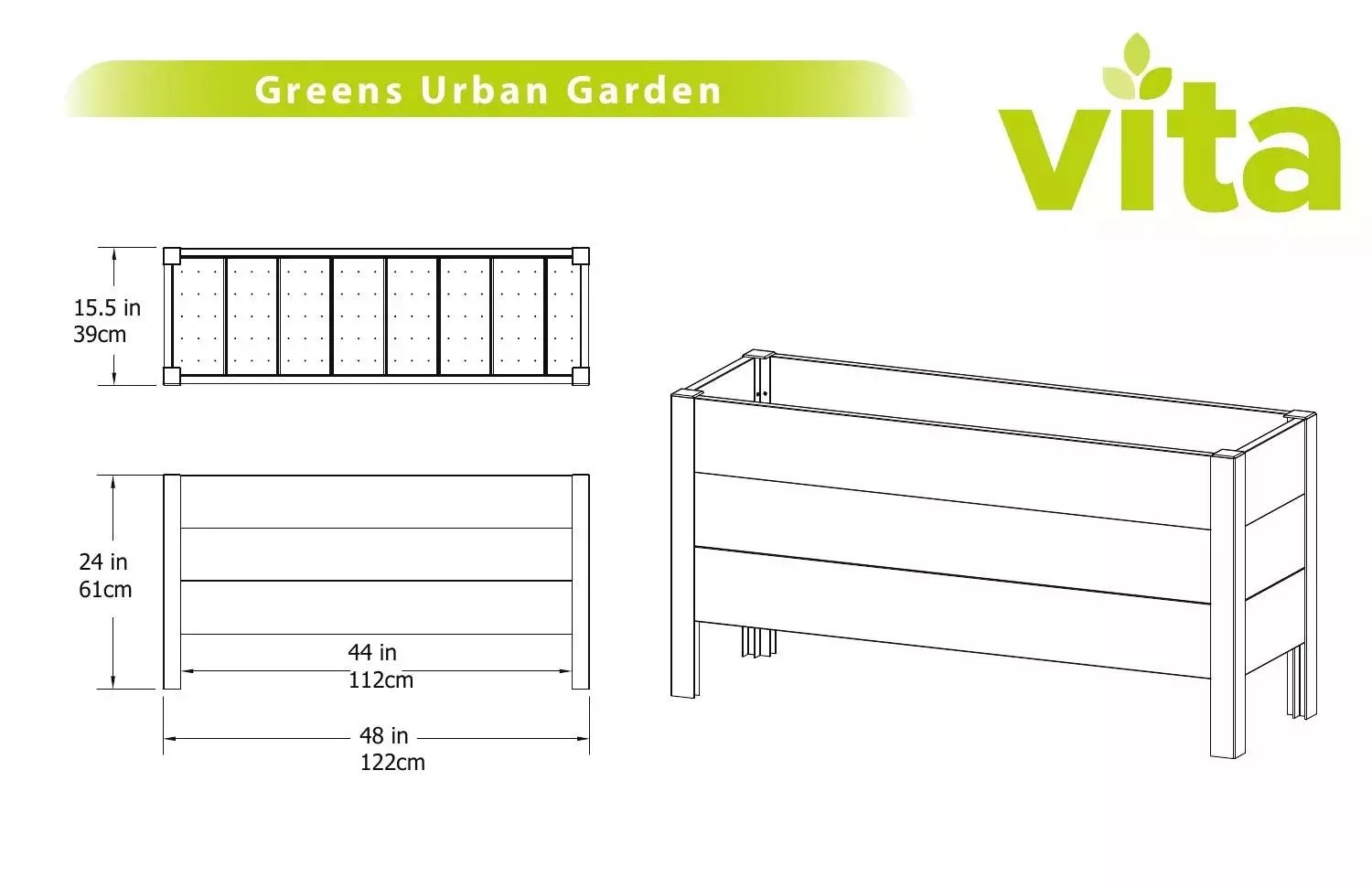 Enjoy all the benefits of an elevated garden – an extended growing season because of warmer soil, better drainage, easier access, little to no weeds, reduced back strain and more efficient use of soil -— all in a food safe, great looking raised bed. The Greens Urban Garden is crafted from a revolutionary blend of recycled wood and food-grade PVC with a specialty finish the texture of real wood. Sturdy black aluminum legs support the whole structure adding an attractive contrast and providing a strong foundation. Designed with a modern aesthetic this attractive garden is a perfect addition to your home.