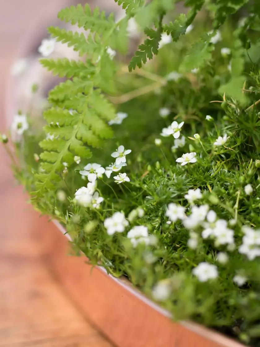 - Handsome copper tray dresses up potted plants and protects surfaces