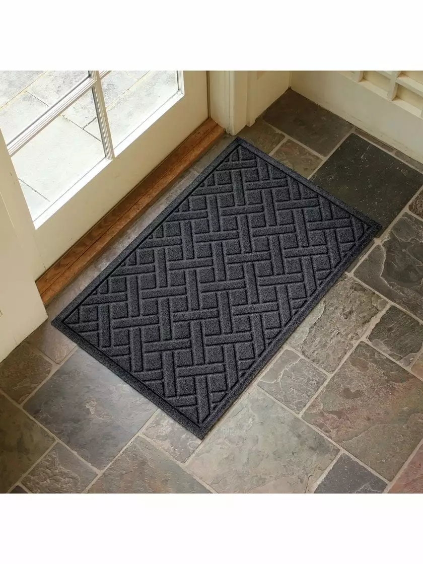 This handsome, durable doormat made from recycled materials welcomes visitors in style — and keeps them from making a mess of your clean floors! The raised lattice design brushes boots clean, while the “water dam” edge keeps up to a gallon of water, mud, and grit safely contained. Anti-static and quick-drying fabric prevents rotting or fading. Grippers on the rubber backing keep it firmly anchored. Best of all, these eco-friendly mats are made with recycled polyester and recycled rubber.