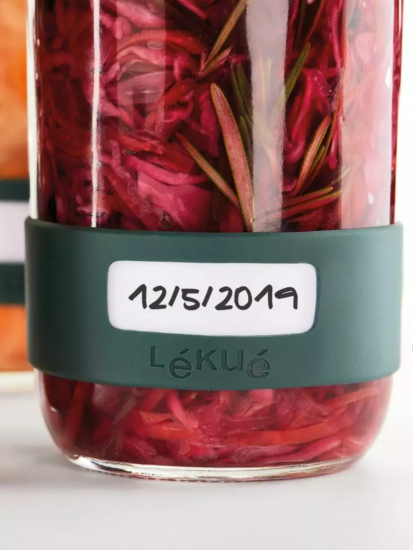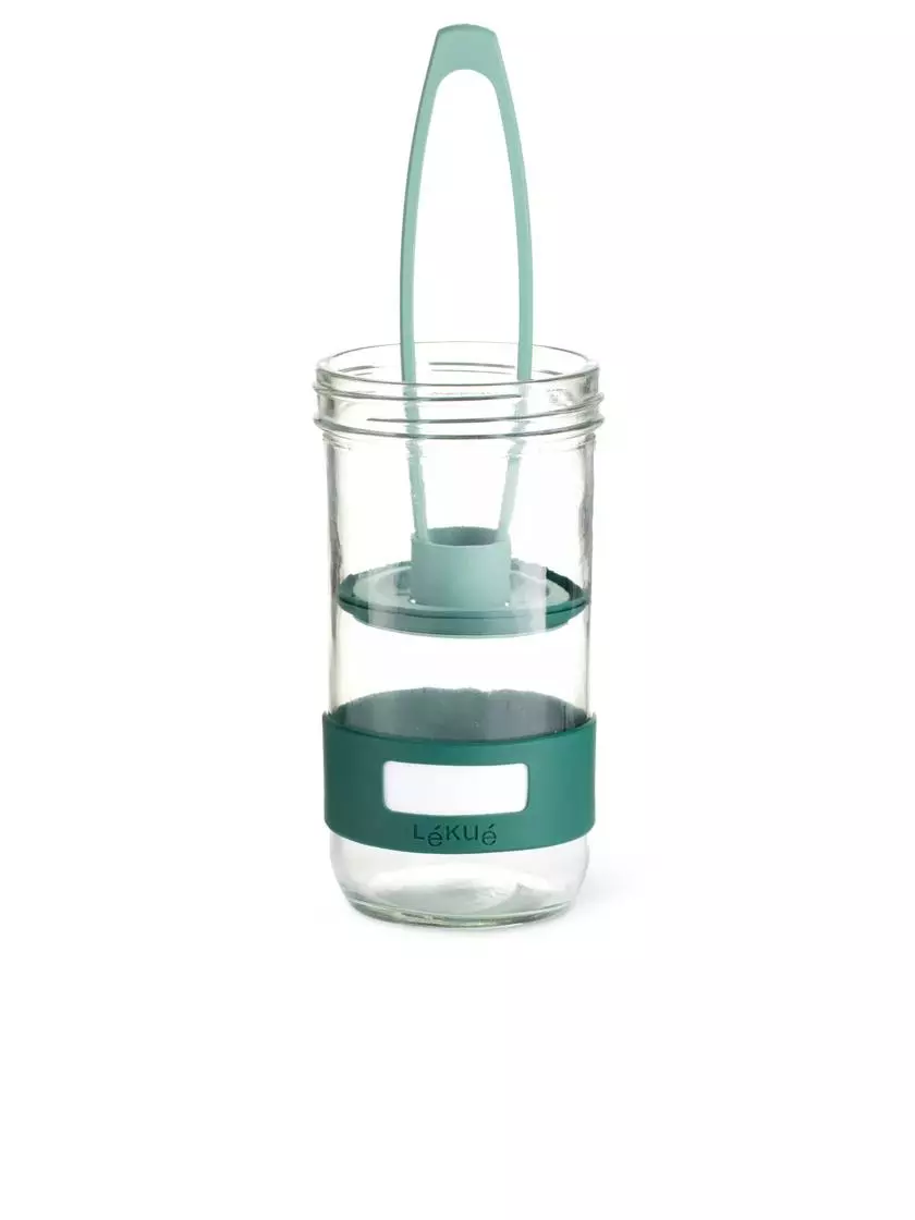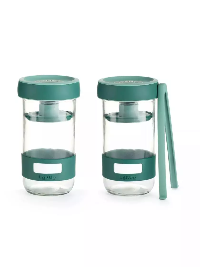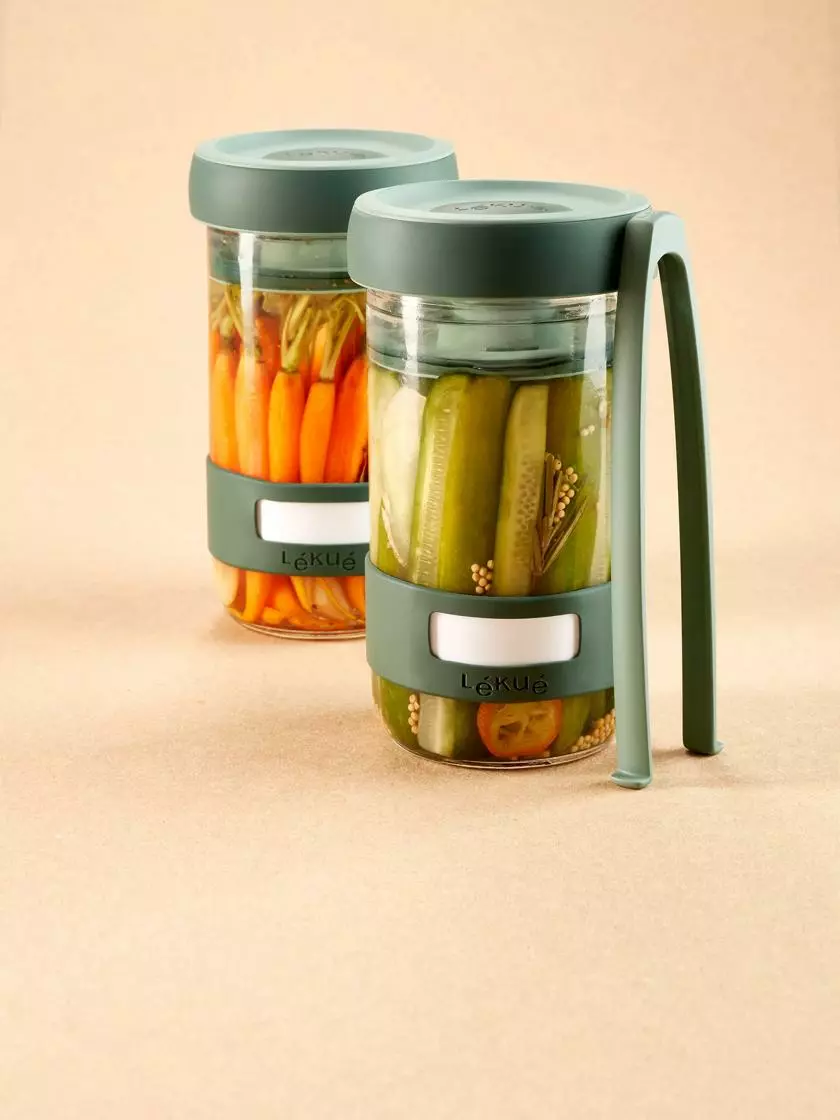 2 heavy-duty glass jars (24 fl. oz.) with exclusive Lékué lid and valve