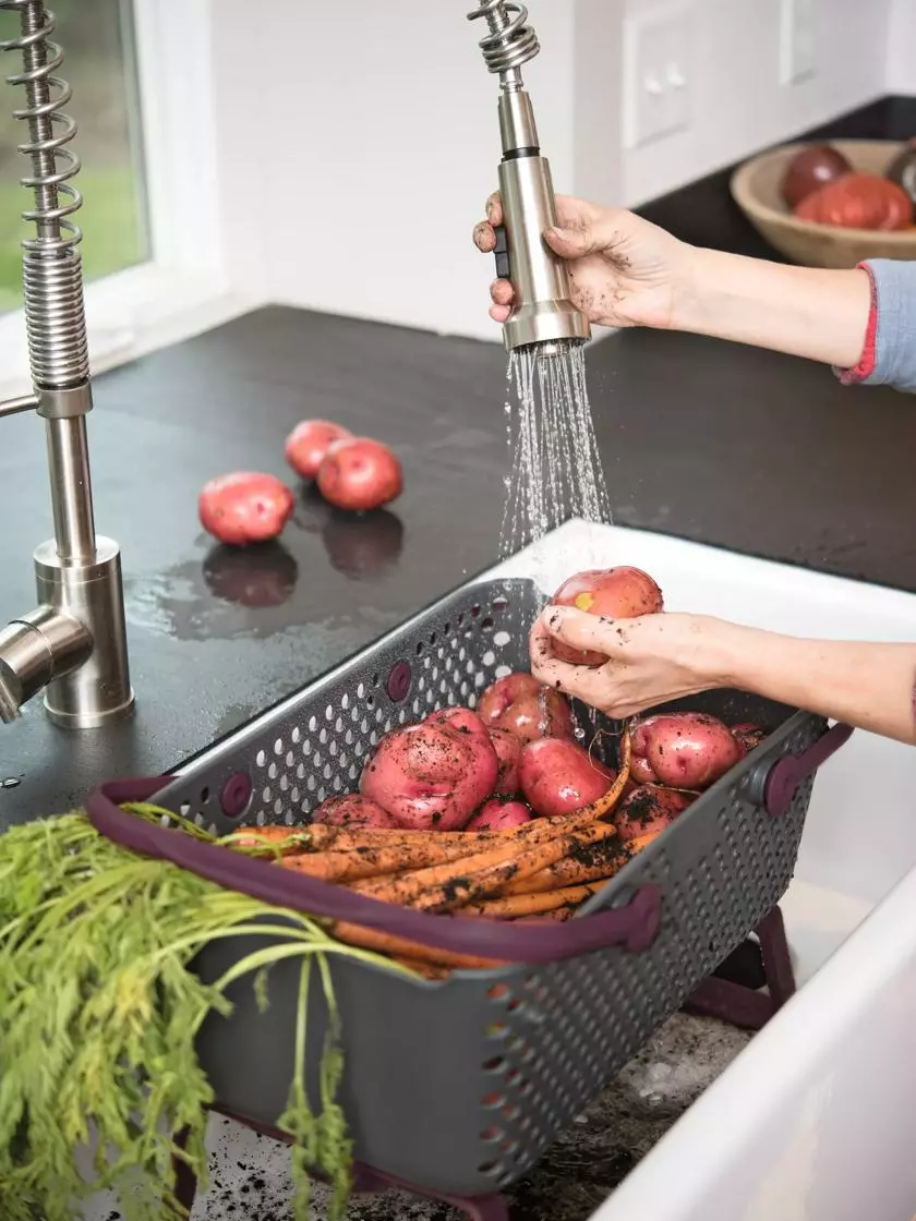- Hose off fresh-picked vegetables outdoors — no more muddy mess in the kitchen sink!