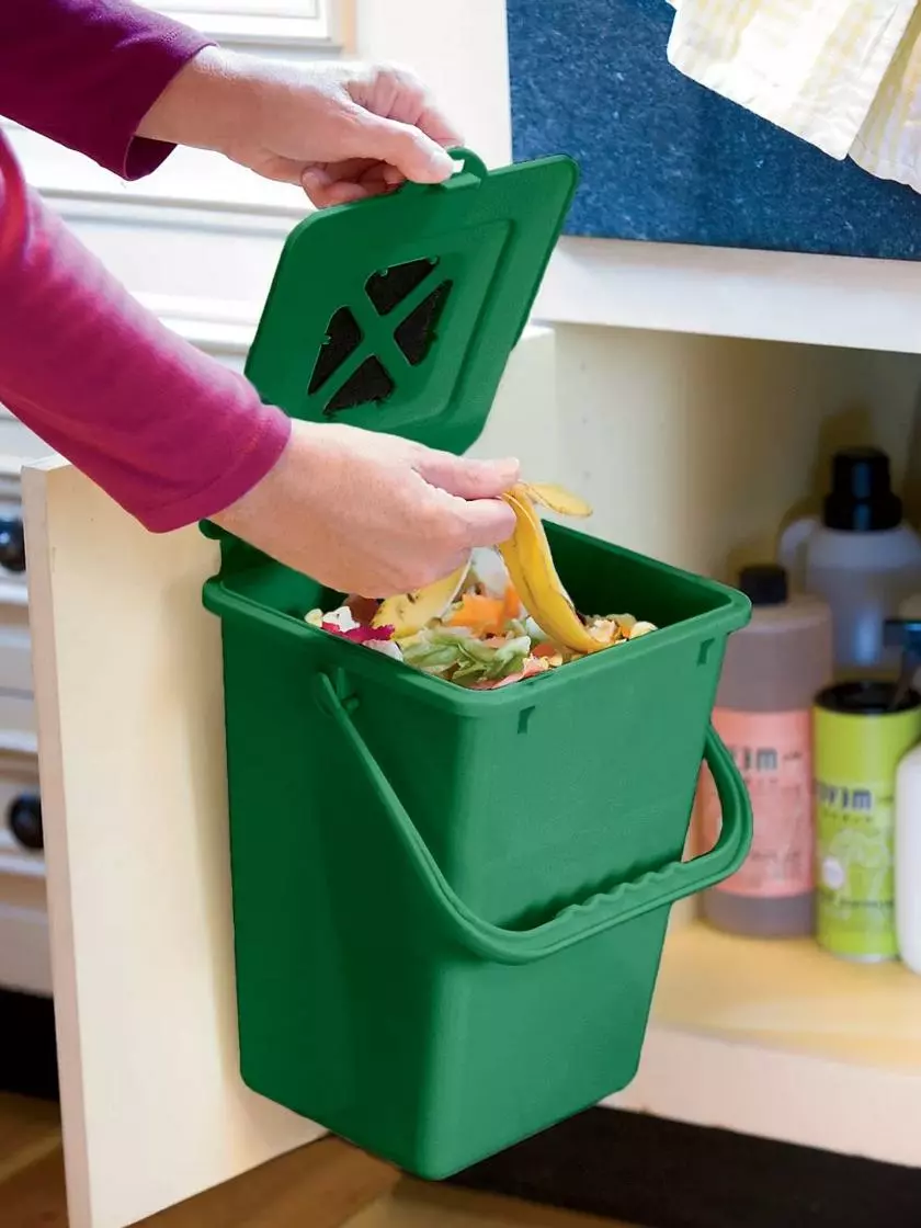 Collect kitchen waste for your compost pile without collecting flies. This Odor-Free Compost Pail has a snap-lock lid and easy-to-replace carbon filters to eliminate food odors. Put it on your countertop, or mount it under your sink.