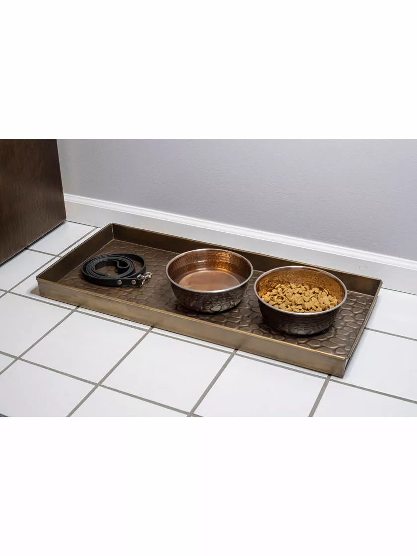 Use this multi-purpose boot tray by Good Directions for shoes in the entryway or mudroom to keep floors clean; as an attractive home for potted plants; or as a neat, no-mess zone for pet bowls. Attractive brass finish, and pads on bottom prevent sliding.