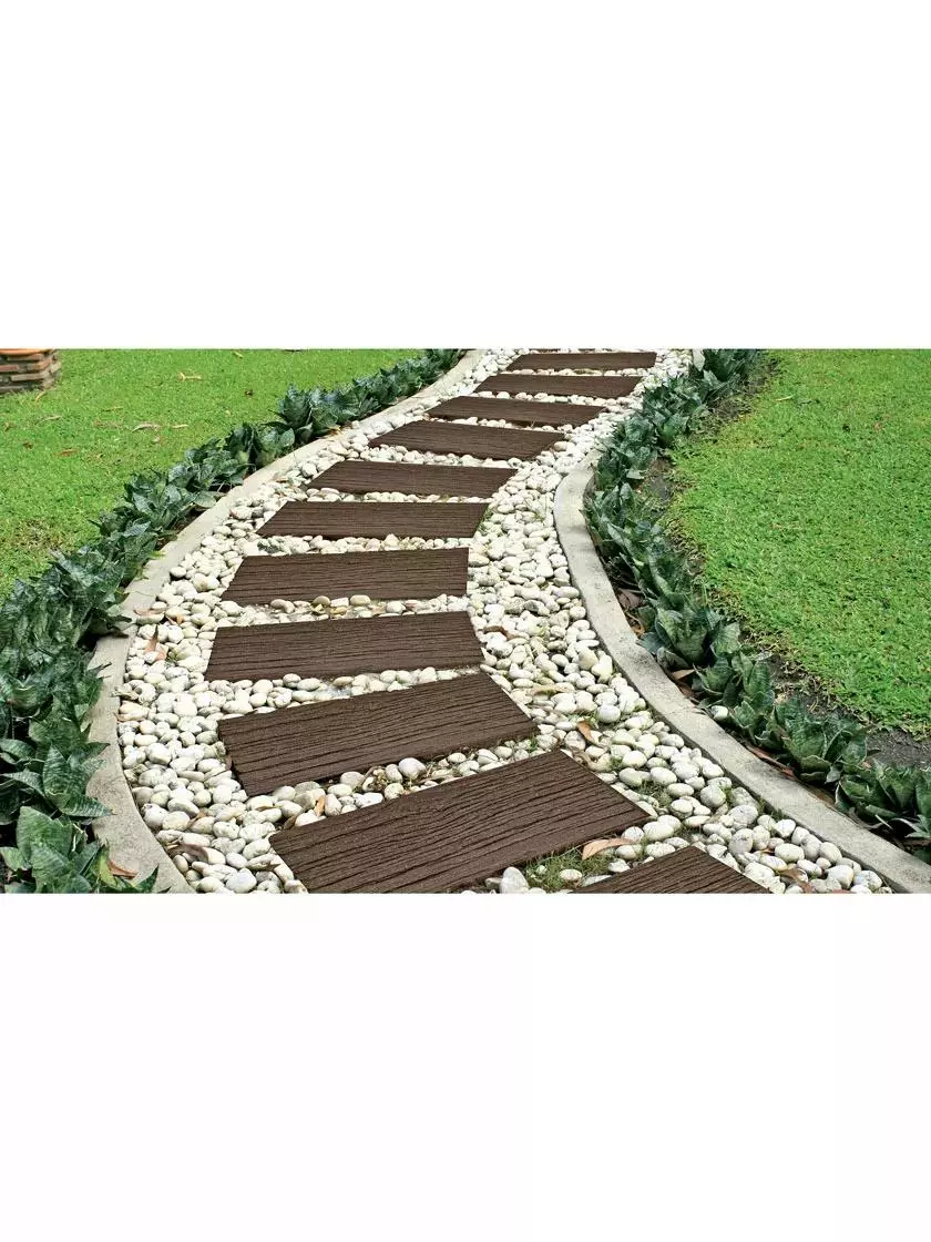 - Stepping stone resembles a wooden railroad tie