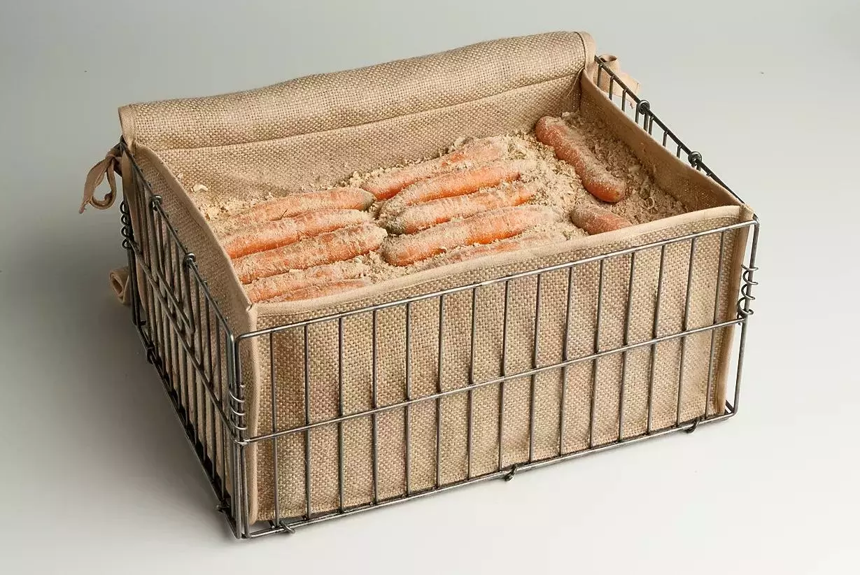 Root veggies like carrots and beets will stay fresh all winter and even grow sweeter in this storage bin. Just fill with layers of damp sand or sawdust, alternating with layers of carrots or beets, and put in a cool, dark place. Potatoes, turnips and squash can go right in the bin without sand.