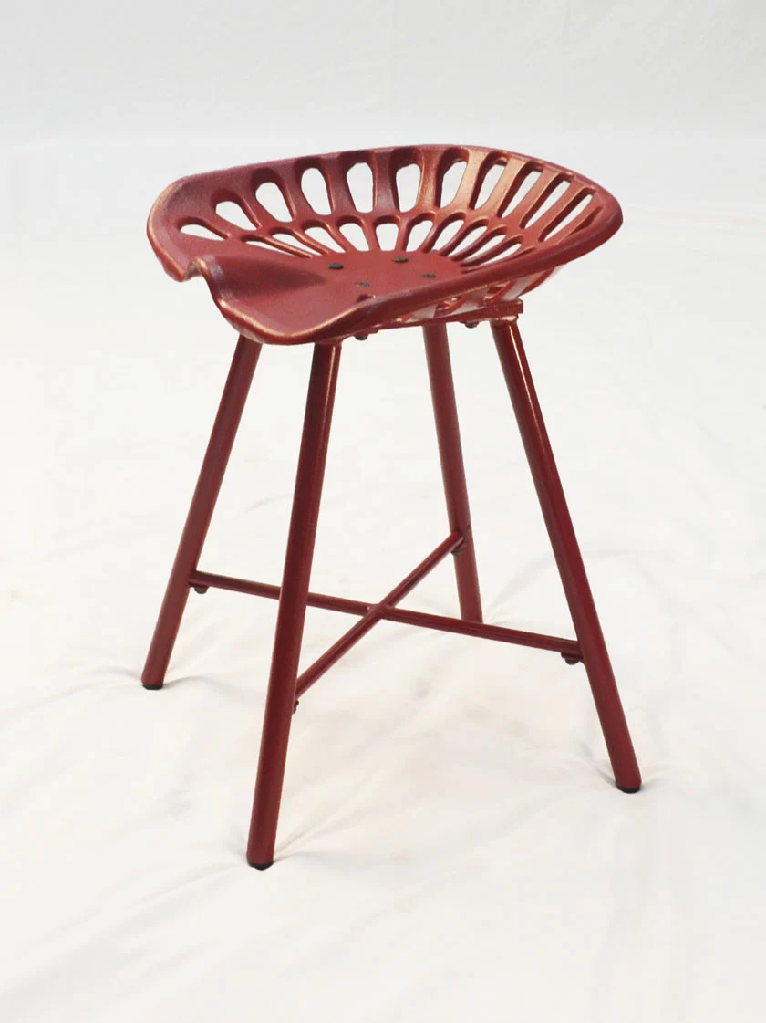 This rustic design deluxe tractor seat stool is perfect as a fireside stool, workshop stool, or potting stool. Made with a sturdy cast iron seat, steel legs, and a long lasting powder-coated finish. Available in vintage red, black, or gray finishes. Simple consumer friendly assembly.