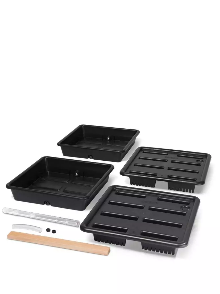 We all love the convenience of a self-watering container so, we thought, why not apply the same principle to an elevated raised bed? Tadaa! Designed to fit our Vermont-made garden boxes these self-watering reservoirs extend time between waterings and create more even moisture throughout the bed. And, since water is drawn primarily from the bottom instead of applied from the top, less water will be lost to evaporation too! In our tests, plants grew stronger, healthier, faster, and produced more.