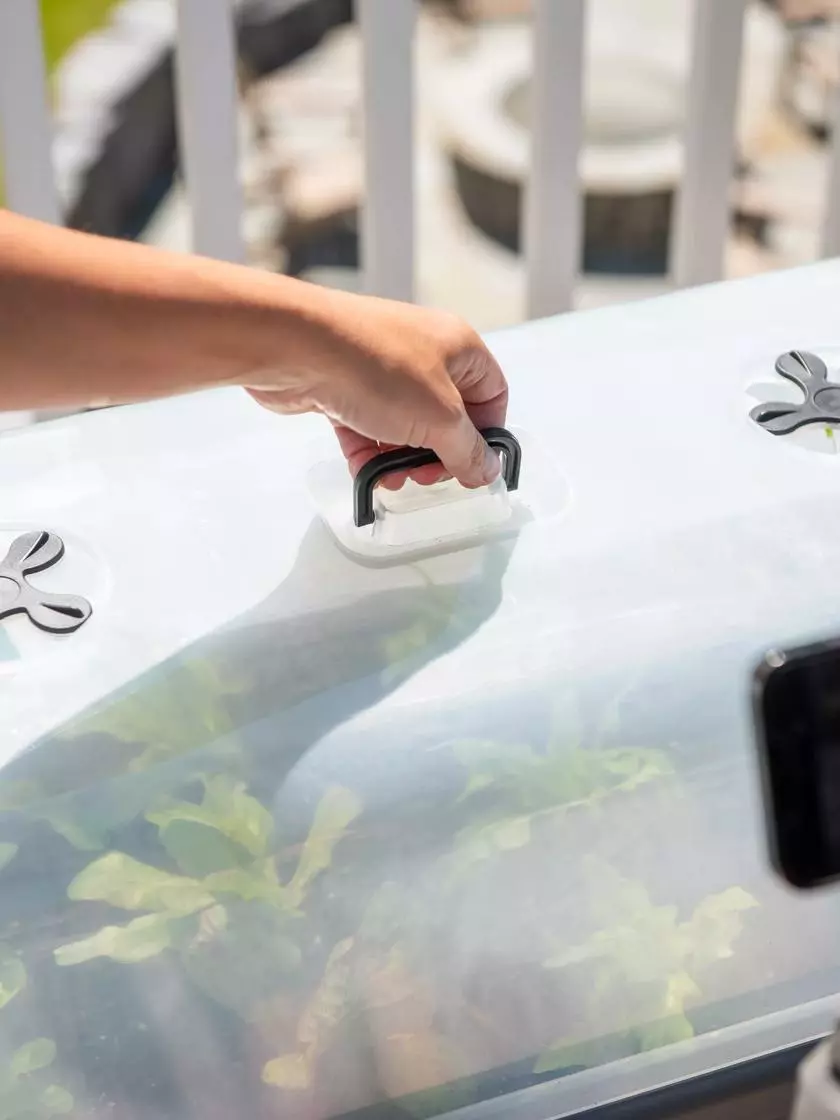 Think you have no room for a salad garden? Think again! This compact planter won’t take up much room and you’ll have mouthwateringly delicious (and fresh!) herbs and veggies at your fingertips. Plant in succession to keep the eating going all summer long, or grow a robust salsa garden to harvest in one go. An inner water reservoir with easy-fill tube makes sure plants stay happy and hydrated and a tall cloche keeps the growing going into the cool season. Two vents on the cloche let you regulate the air flow so tender plants don’t wilt or bake on sunnier days in early spring or late fall. If using the planter outdoors, be sure to remove the drainage plug so your plants don’t get waterlogged on rainy days.