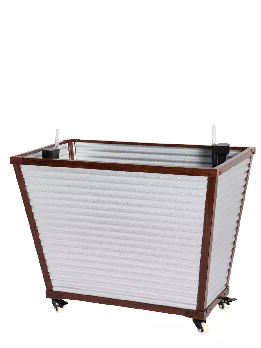 Distinctive tall trough planter brings unique style to your patio, deck, balcony or poolside. Aluminum trim with a faux wood finish gives this ultra-durable, galvanized planter a modern edge. The patented watering system uses capillary tubes to deliver water from the built-in reservoir to keep plant roots consistently moist. Sturdy, smooth-rolling casters let you reposition it with ease. This versatile planter is great for dramatic plantings of vegetables and herbs, and is ideal for adorning a perimeter or creating a tall screen.