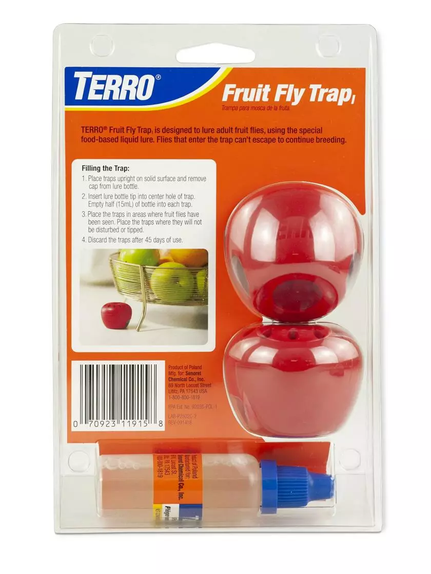 - Fast-acting trap eliminates fruit fly infections