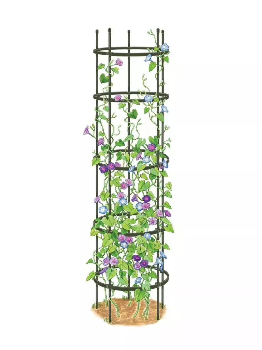 Another superhero in our Titan family of supports, this impressively tall obelisk has five rings that snap onto the verticals wherever your vines need them. Steel cores provide strength and dependability, while the poly casing is gentle to plant stems. Disassembles easily for off-season storage. GSC Exclusive.