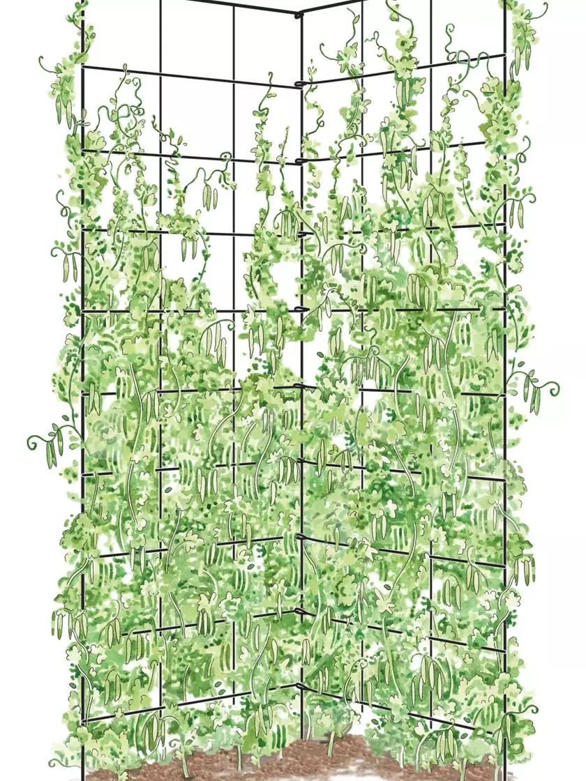 Use this trellis as a flat backdrop against a wall, or angle it around a corner to maximize space in your raised bed. Sturdy powder-coated steel panels offer great support for cukes, squash, beans and peas, as well as compact flowering vines. Folds flat for storage. Generous grid openings make harvesting easy.