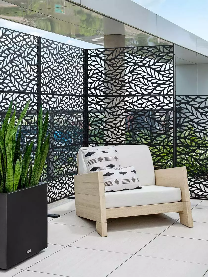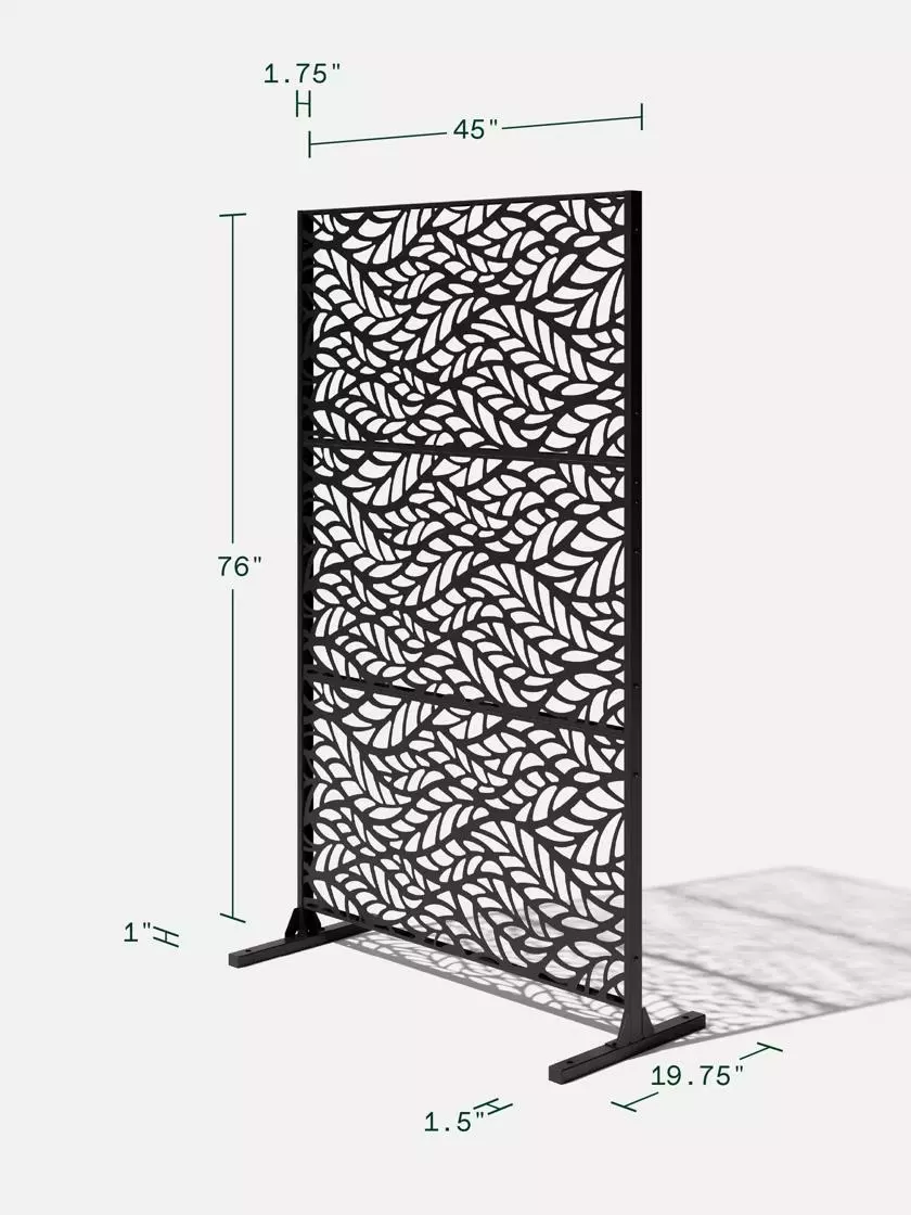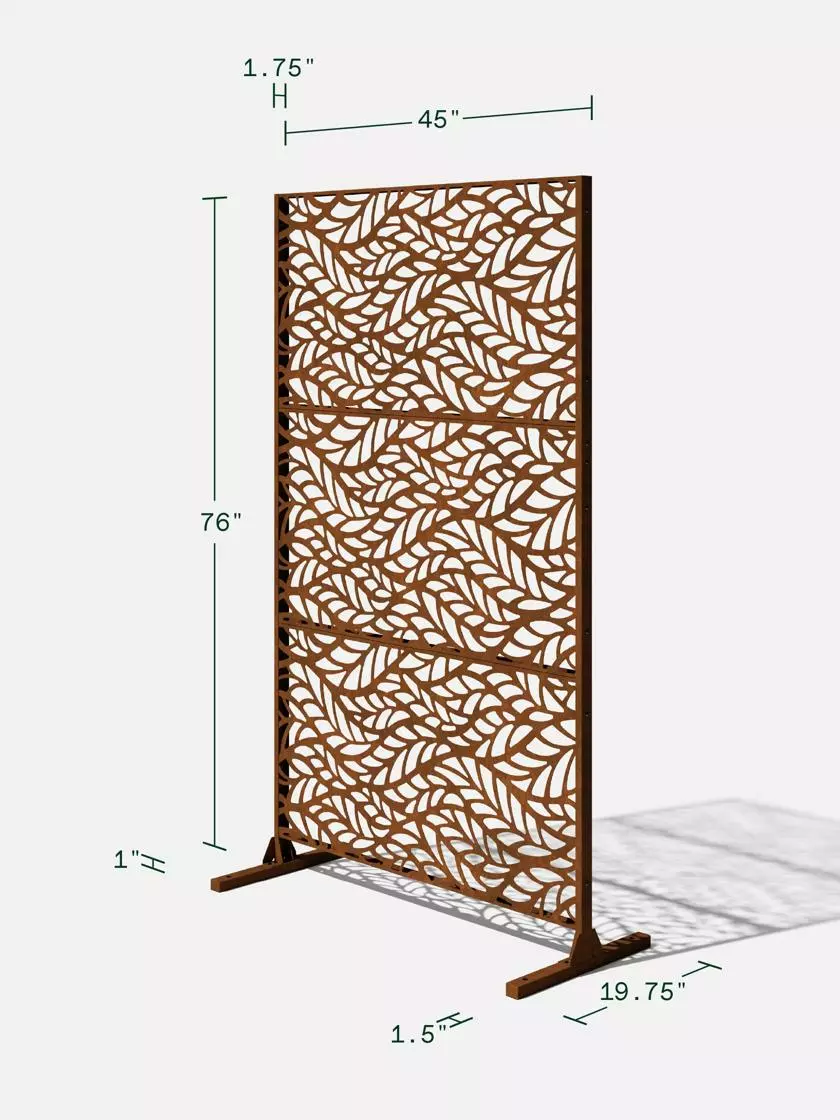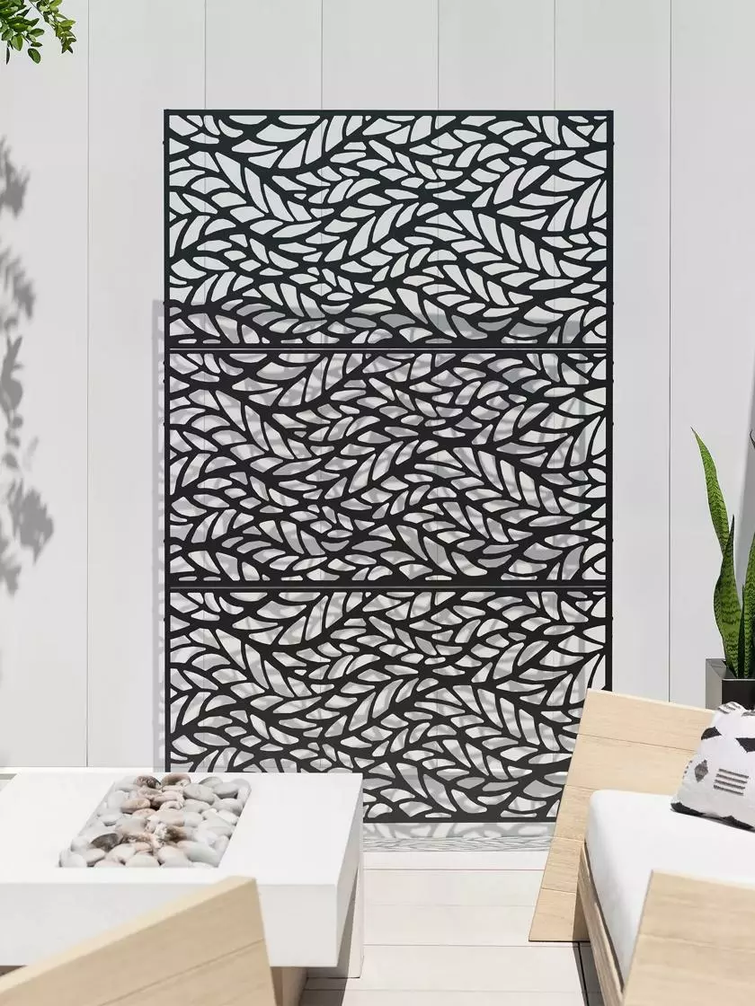 Privacy has never looked so good! Transform your backyard or deck with an outdoor three-panel privacy screen set. Inspired by nature, these screens are modern, yet versatile. Use a set to hide an unsightly view, to block unwanted direct sunlight, create privacy or to frame an outdoor room. The screens are made from 1-1/2 mm laser cut steel designed to resist corrosion through all seasons.