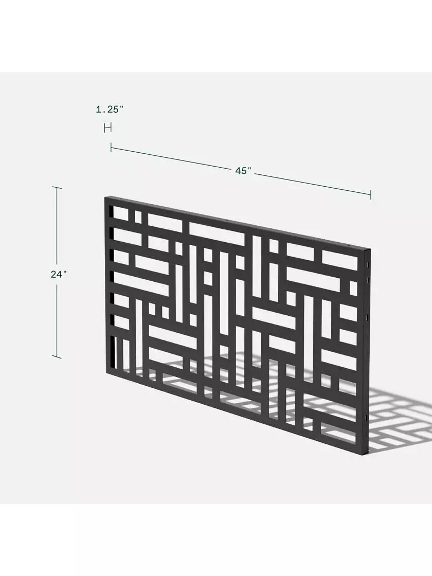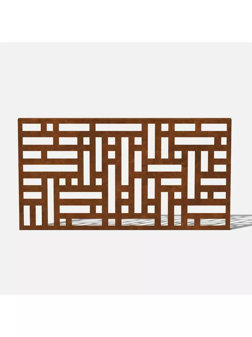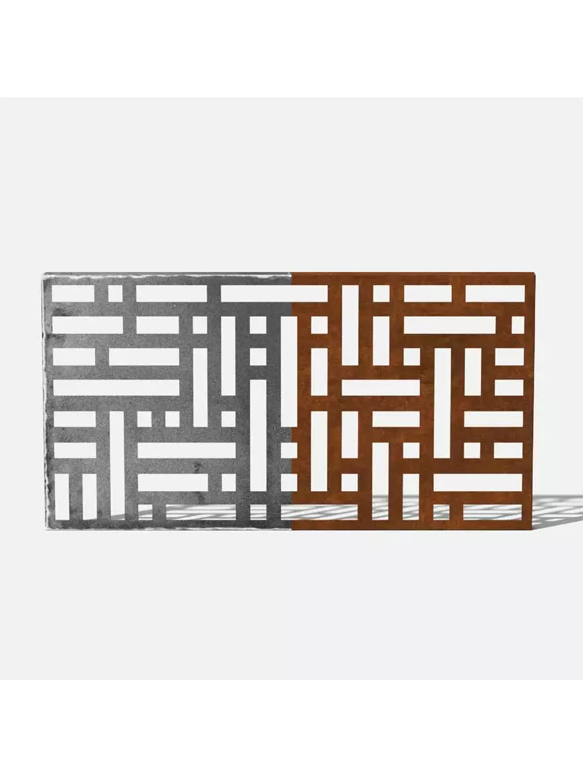 This screen is made from 1.5 mm laser cut steel designed to resist corrosion through all seasons. Solid, yet lightweight, the black galvanized steel screen is protected by a strong, scratch-resistant powder coating that is treated with UV inhibitors to minimize fading. The Corten steel screens are shipped in their raw steel state, gradually developing an attractive and protective patina of rust that safegaurds the base metal from corrosion.