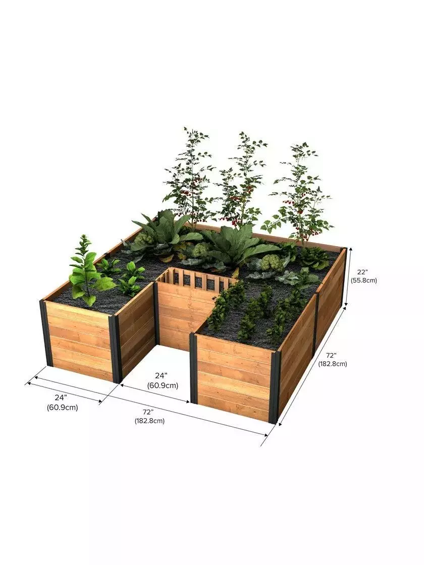 Mezza cedar boards are treated with a warm, distinctive water-based stain that make it safe for the environment and ensure healthy, safe food production. Boards slide into posts easily and conveniently, with no need for tools or screws. The innovative posts make for perfectly modular beds, allowing you to design and configure your own unique garden layout and size. It’s smart, sustainable and beautifully crafted.