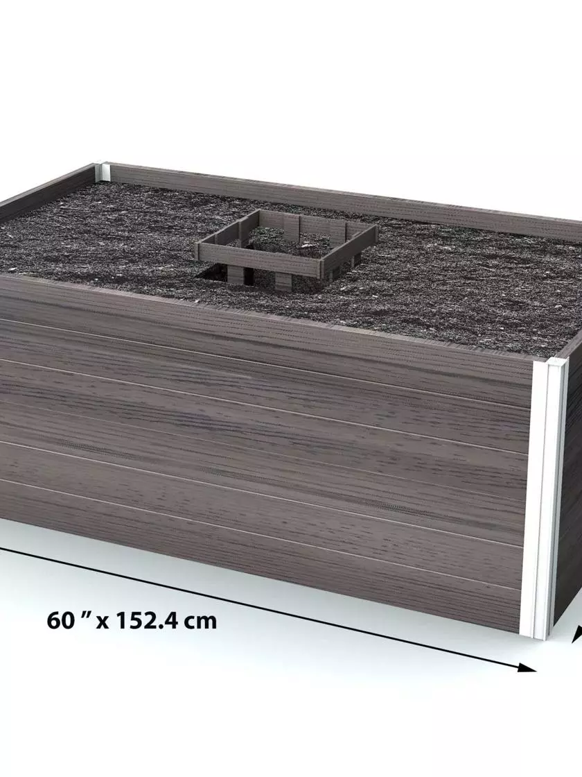 The Urbana Keyhole Composting Garden is crafted from a never before seen material that offers the natural look of wood, but with the lightweight durability of polymer. Dual aesthetic boards can be reversed to allow for either a natural wood grain look or brushed finish and are BPA/phthalate-free ensuring healthy, safe food production and a long product lifespan. Boards slide into posts easily and conveniently, with no need for tools or screws. The innovative posts make for perfectly modular garden beds, allowing you to design and configure your own unique layout and size. It’s smart, sustainable and beautifully designed.