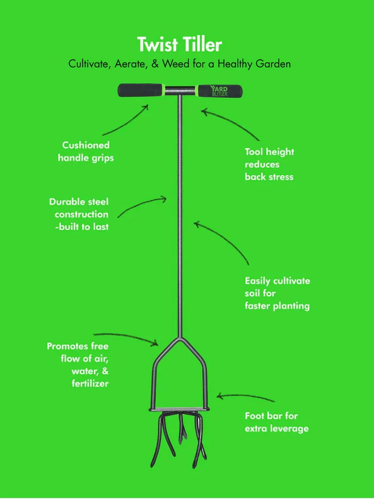 Healthy soil needs a little love. The garden twist tiller breaks up ground with a few easy twists. The long length lets you stand tall, while the cushioned handles offer a comfortable grip. A foot bar gives you extra leverage so you can break up compacted top layers with ease. Your garden beds have never looked better.